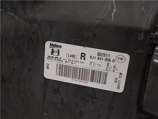 FARO DEL. DCHO Seat ibiza berlina (6j5)(06.2008->) 1.4 CGGB 6J1941006D BLANCO Bombillas delanteras Delanteros Derechas Derechos Lámparas luces Luz piloto Pilotos LVE