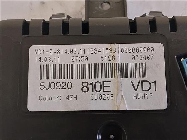 CUADRO COMPLETO Skoda fabia (5j2)(2007->) 1.2 Style [1,2 Ltr. – 63 kW 8V TSI] CBZ – #Prov# CBZPROV 5J0920810E NEGRO COMPLETO instrumentos