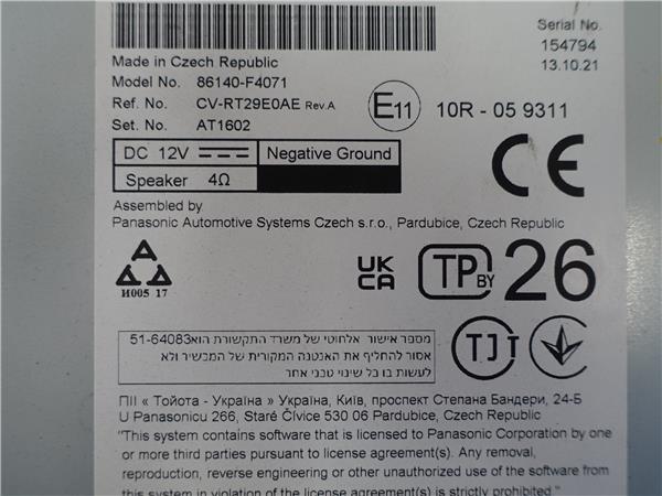 PANTALLA Toyota c-hr (x10)(10.2016->) Híbrido Hybrid Active [Híbrido 90 kW ( 1,8 Ltr. – 72 kW 16V)] 2ZR – #Prov# 2ZRPROV 86140-F4071 86140F4071 GRIS multifunción