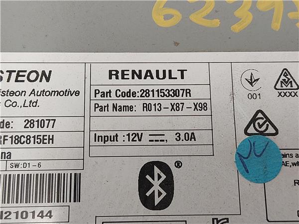 RADIO / CD Renault clio iv (2012->) 1.5 Limited [1,5 Ltr. – 66 kW dCi Diesel FAP] K9K E6 – #Prov# K9KE6PROV 281153307R BLANCO sistema audio