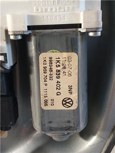 MECANISMO ELEVALUNAS TRA. DCHO. Volkswagen jetta v (1k2)(2005->) 2.0 TDI 16V BKD 1K5839402G GRIS Derechas derechos motor Traseras traseros