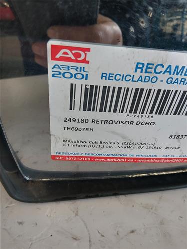 RETROVISOR DCHO. Mitsubishi colt cz3 berl. 5 (z30a)(2005->) 1.1 Inform (D) [1,1 Ltr. – 55 kW CAT] G/ 134910 – #Prov# G134910PROV TH6907RH ROJO Derecho Espejo