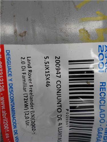 CONJUNTO DE 4 LLANTAS ALUMINIO Land Rover freelander (ln)(09.2002->) 2.0 DI D-20T2N – #Prov# D20T2NPROV 5.5JX15X46 55JX15X46 BLANCO
