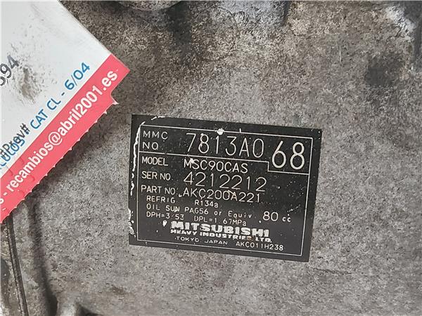 COMPRESOR AIRE ACOND. Mitsubishi lancer sedán (cy/z_a) 2.0 DI-D BWC – #Prov# BWCPROV 7813A068 NEGRO Acondicionado