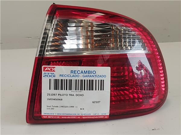 PILOTO TRA. DCHO. Seat toledo (1m2)(03.1999->) 1.6 16V BCB 1M5945096B GRIS Bombilla Derecha derecho Faro Lámpara Luz Trasera trasero ERT