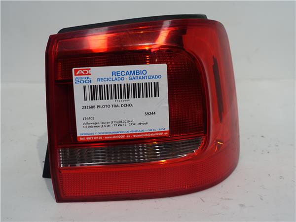 PILOTO TRA. DCHO. Volkswagen touran (1t3)(08.2010->) 1.6 Advance [1,6 Ltr. – 77 kW TDI DPF] CAYC – #Prov# CAYCPROV 176405 GRIS Bombilla Derecha derecho Faro Lámpara Luz Trasera trasero